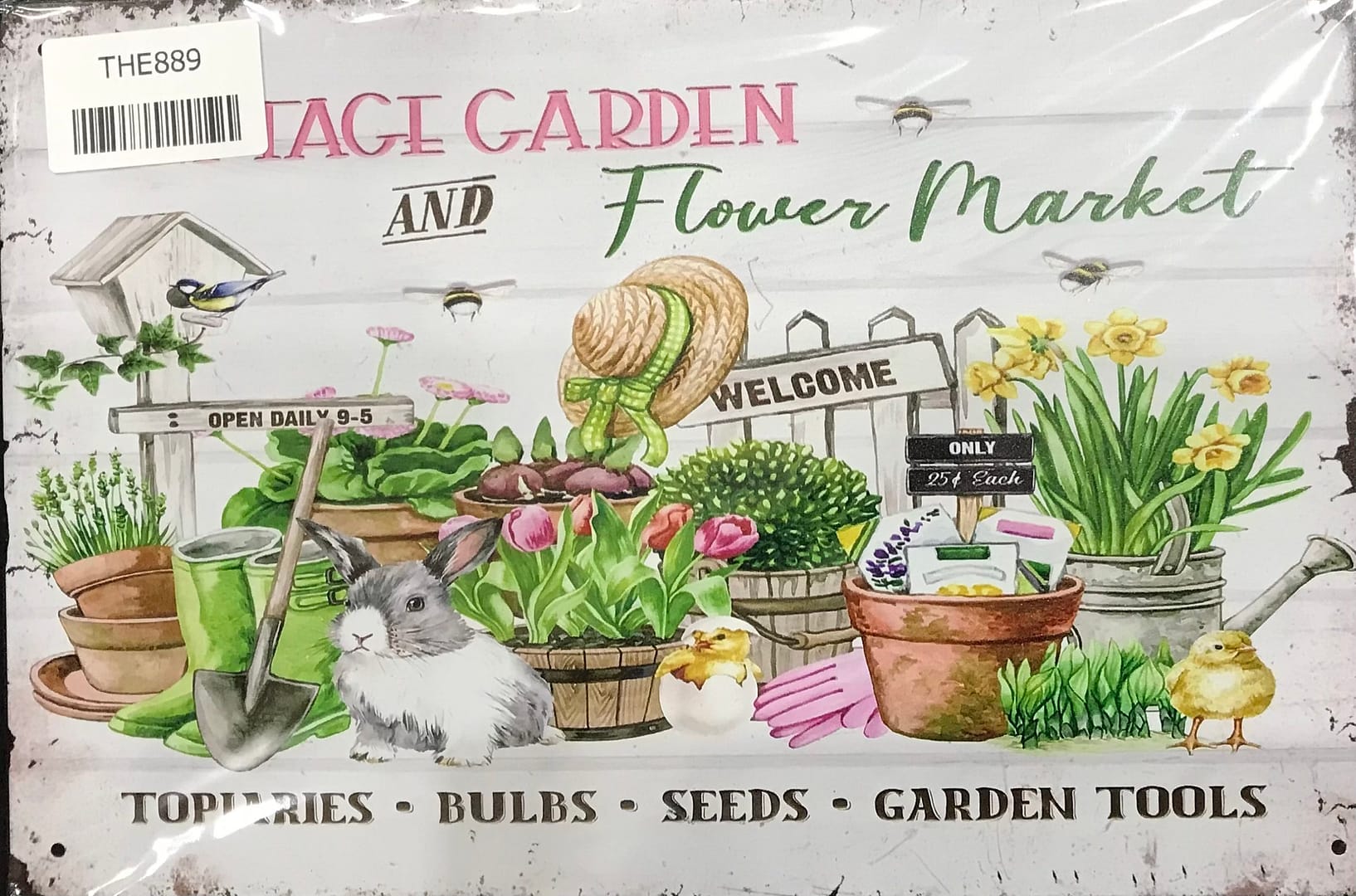Fém Retro tábla “Topiaries,Bulbs, seeds, garden tools”