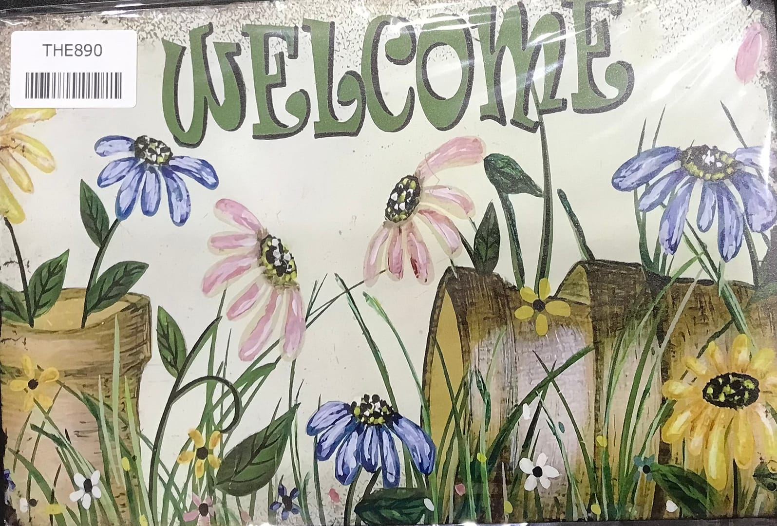 Fém Retro tábla “Welkome virágos”