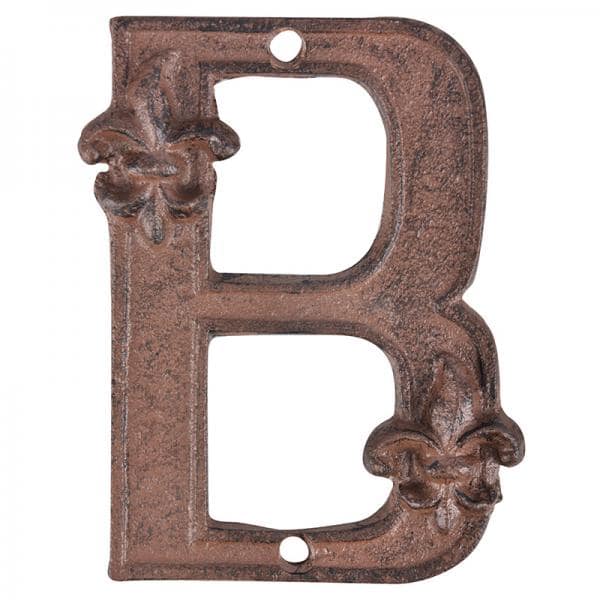 Öntöttvas házszám kiegészítő – B betű liliom mintával.