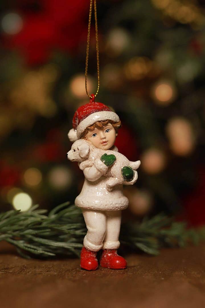 Klasszik karácsonyfadísz – fiú kutyussal 10cm