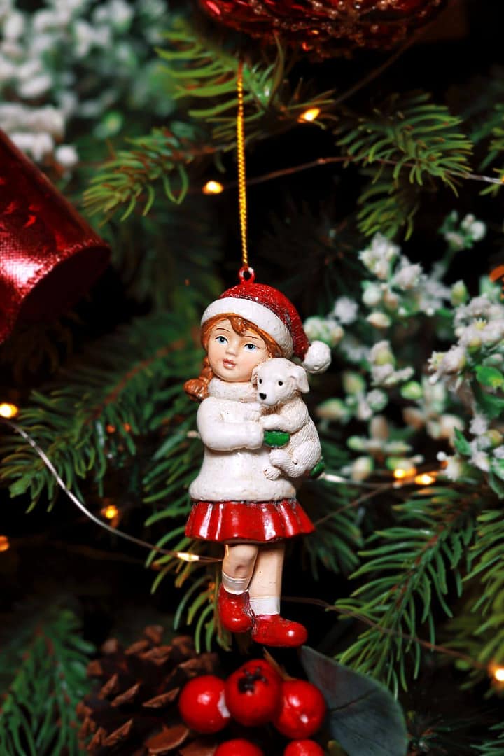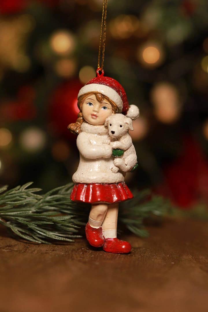 Klasszik karácsonyfadísz – lány kutyussal 10cm