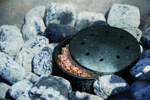 Válogatott, speciális faforgácsokkal töltött füstölődoboz, amellyel könnyen egyedi ízt adhatunk az ételeknek. Öntöttvasból készült, időtálló termék. A termék a speciális faforgácsot tartalmazza. Használat: Mérjük ki a megfelelő mennyiségű faforgácsot a füstölő doboz megtöltéséhez. Helyezzük a faforgácsot körülbelül 30 percre vízbe. Ezután tegyük a nedves faforgácsot a füstölőbe, a brikettek közé.