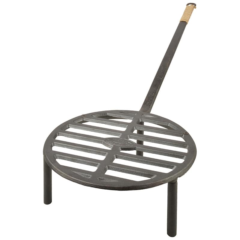 Tűzbe helyezhető öntöttvas grillrács, mely edény alátétként is használható. Használható húsok és zöldségek sütésére. Hosszú nyelének köszönhetőn könnyen mozgatható, és nem kell a forró felületet megfognunk.