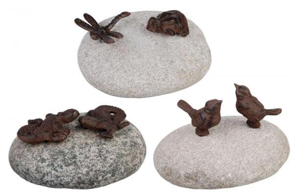 | Páros állatdíszek kövön | béka szitakötő, gyíkok, madarak |