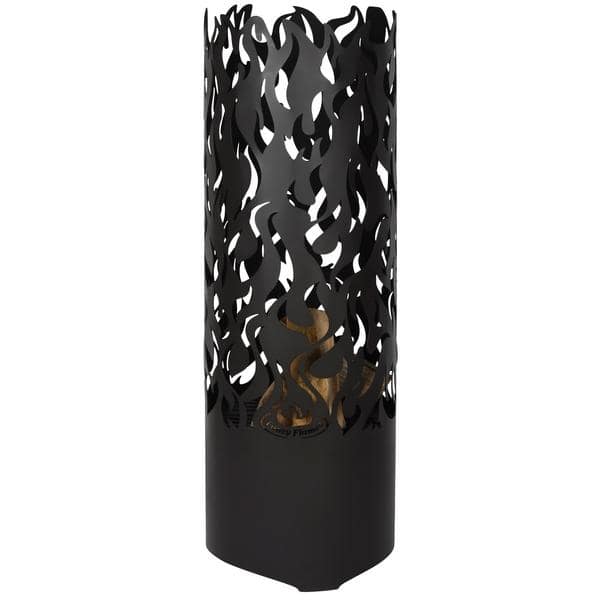 Lézervágott láng mintás teraszfűtés, hőálló fekete festékkel felületkezelve. A termék alján található kis ajtón keresztül rakható fa a teraszfűtésbe.